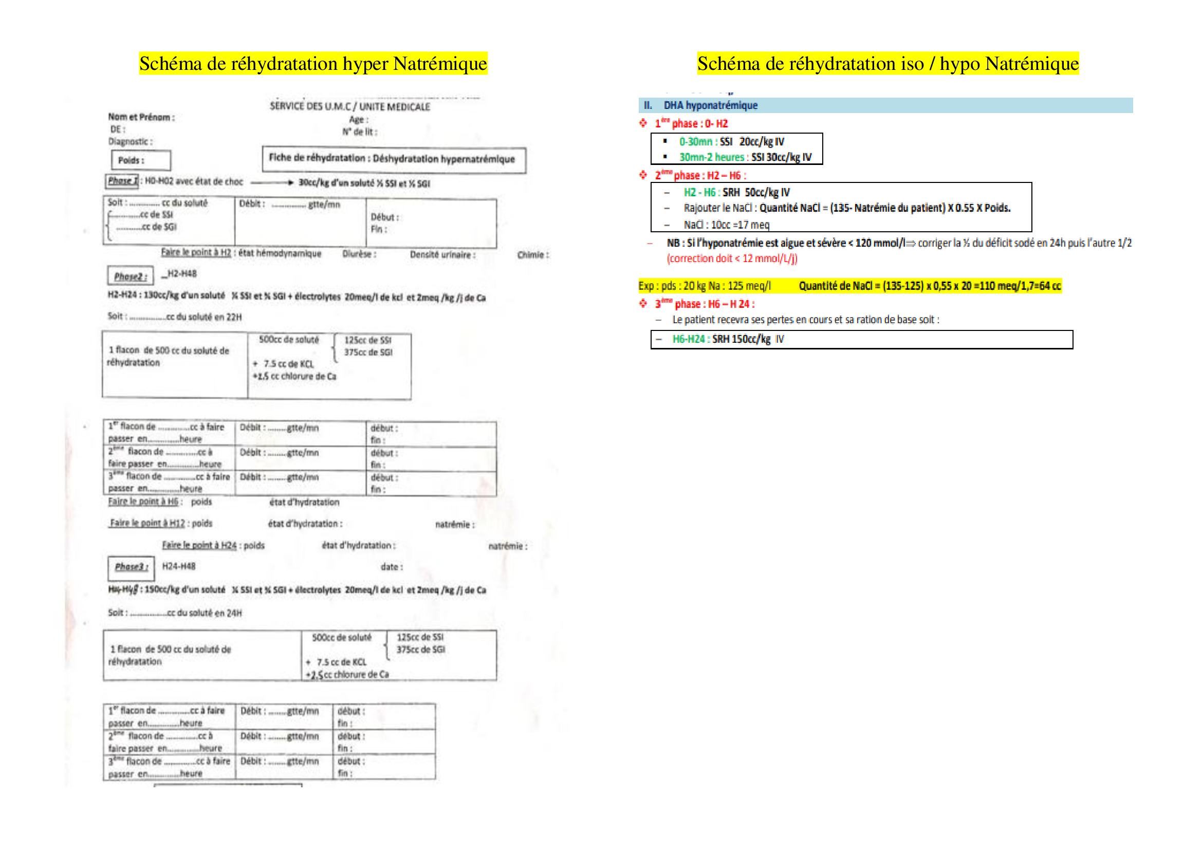 Schema de la rehydratation par voie IV :
